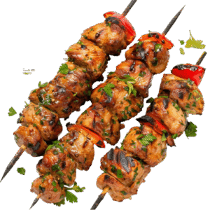 Marinated chicken in yogurt and spices before being cooked in a tandoor oven, resulting in smoky, flavorful meat.